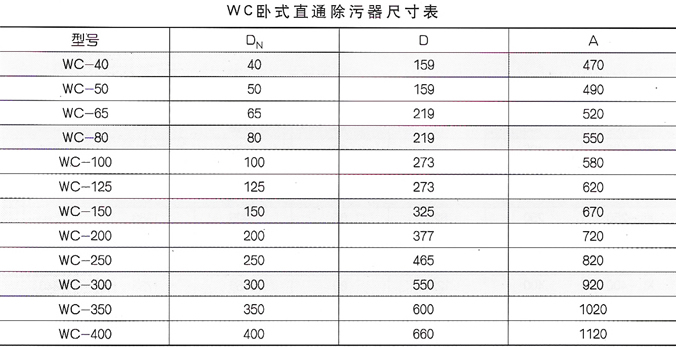 本臥式除污器為直通式除污器,其工作原理與立式除污器相同,水從一側接管進入筒體內,另一側接管與筒體內的濾網孔管相連,過濾網孔管是由許多直徑為 3.5 毫米的小孔構成。水中的雜質顆粒被網孔濾除,積存在筒體的底部,無雜質顆粒的水經過濾網孔從改廁接管流出。