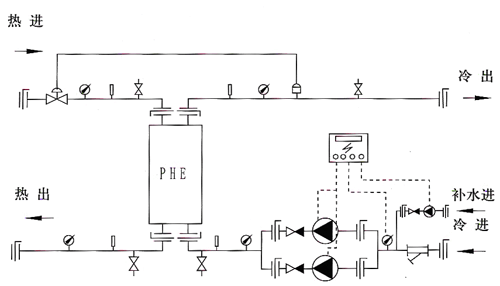 Manually control the heat exchanger unit, and manually control the water supply temperature of the secondary network of the heat exchanger unit through on-site direct reading instrument. Through the remote pressure gauge and controller, the water can be replenished automatically at constant pressure.