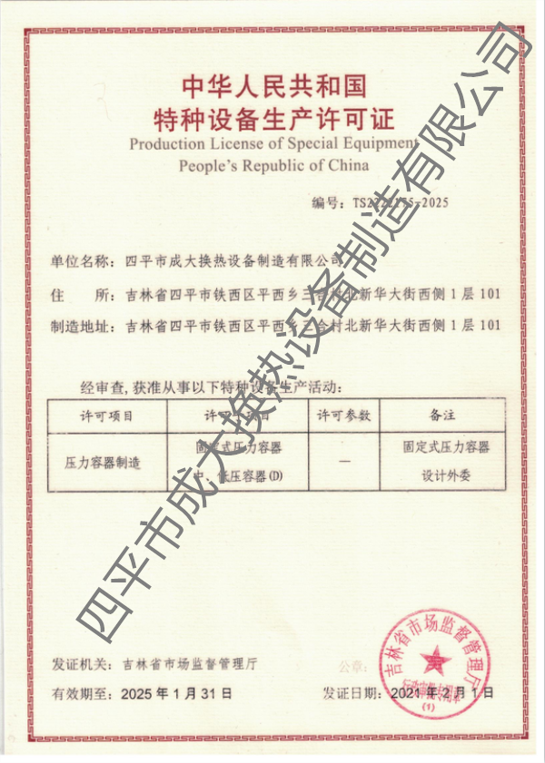 特種設備生成許可證