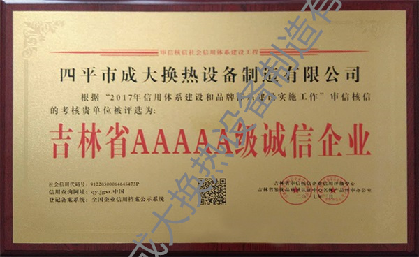 吉林省AAAAA級誠信企業(yè)