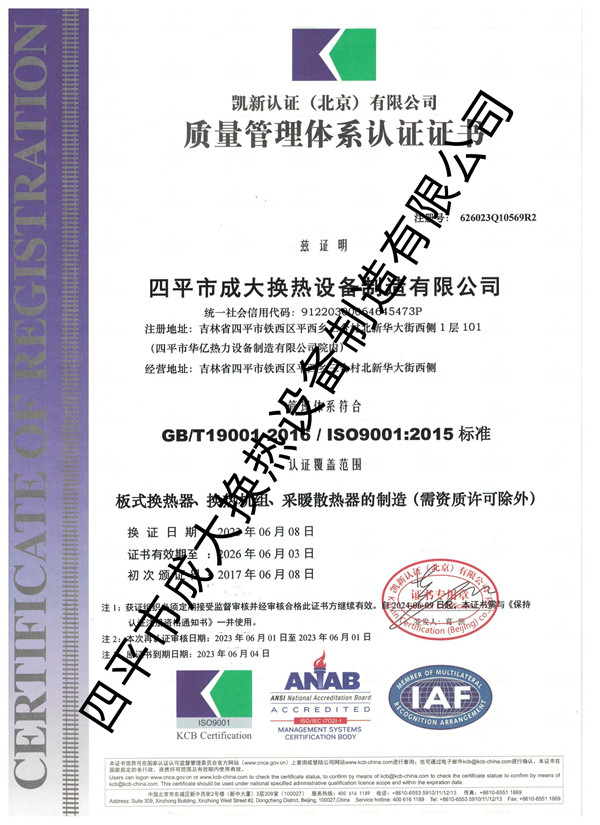 質量管理體系認證證書
